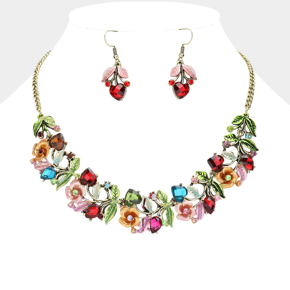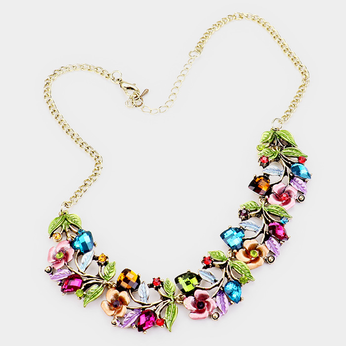 Glass Crystal Metal Flower Leaf Evening Bracelet