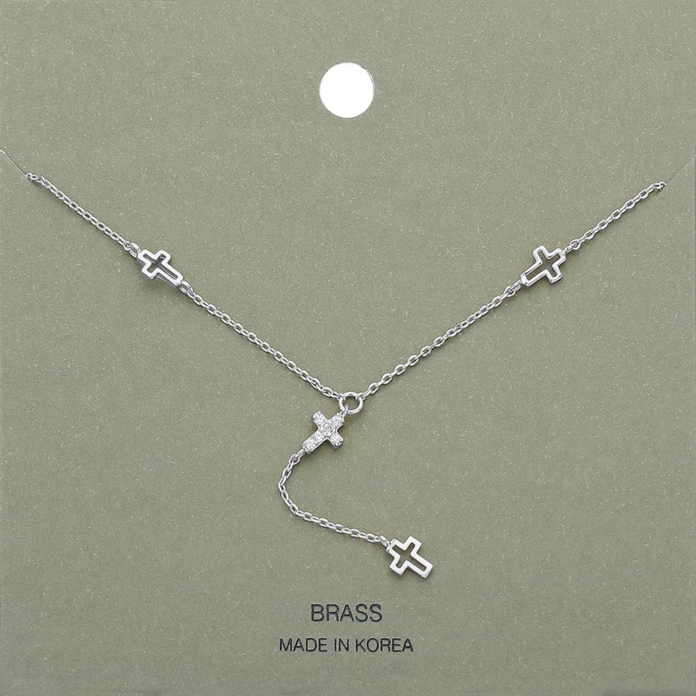 Gold Dipped CZ Stone Embellished Cross Dangle Earrings