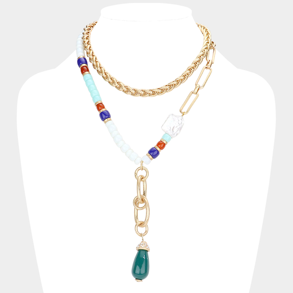 Teardrop Accented Beaded Double Layered Necklace
