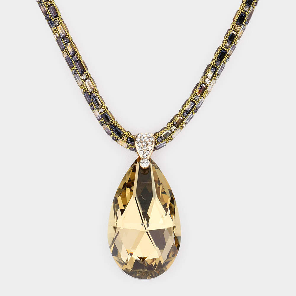 Rhinestone Embellished Teardrop Dangle Evening Earrings