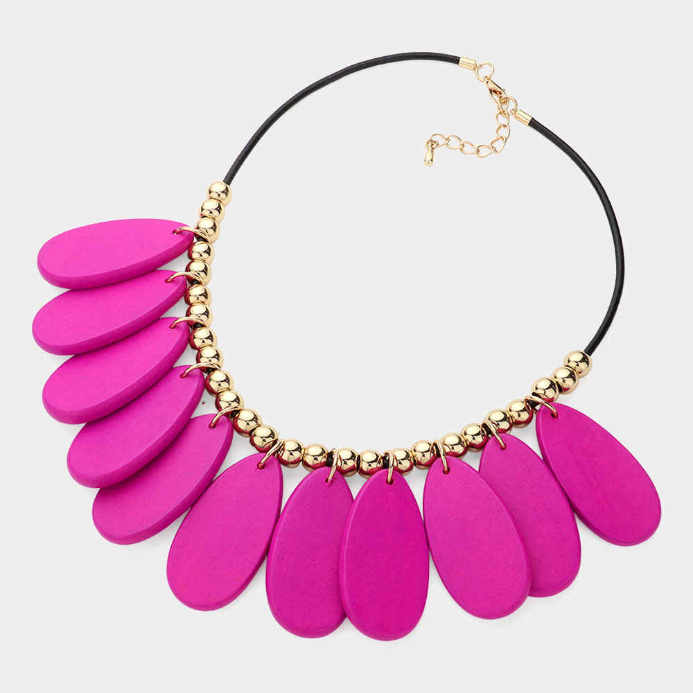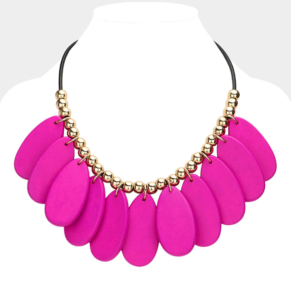 Evil Eye Open Metal Circle Pendant Wood Multi Layered Necklace