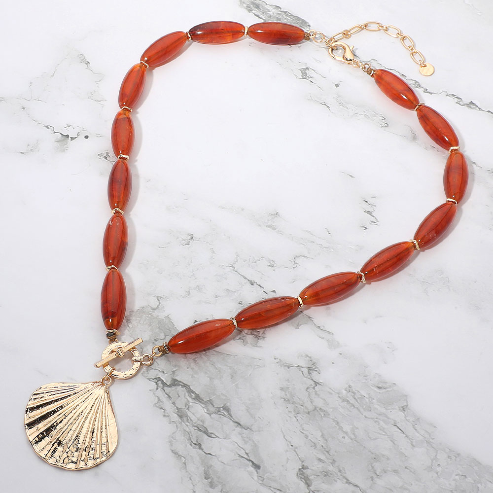Textured Metal Shell Toggle Pendant Chunky Oval Resin Beaded Statement Necklace