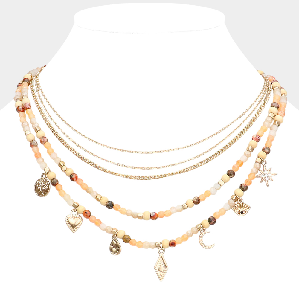 Tree of Life Heart Teardrop Crescent Moon Evil Eye North Star Pendant Station Multi Layered Necklace