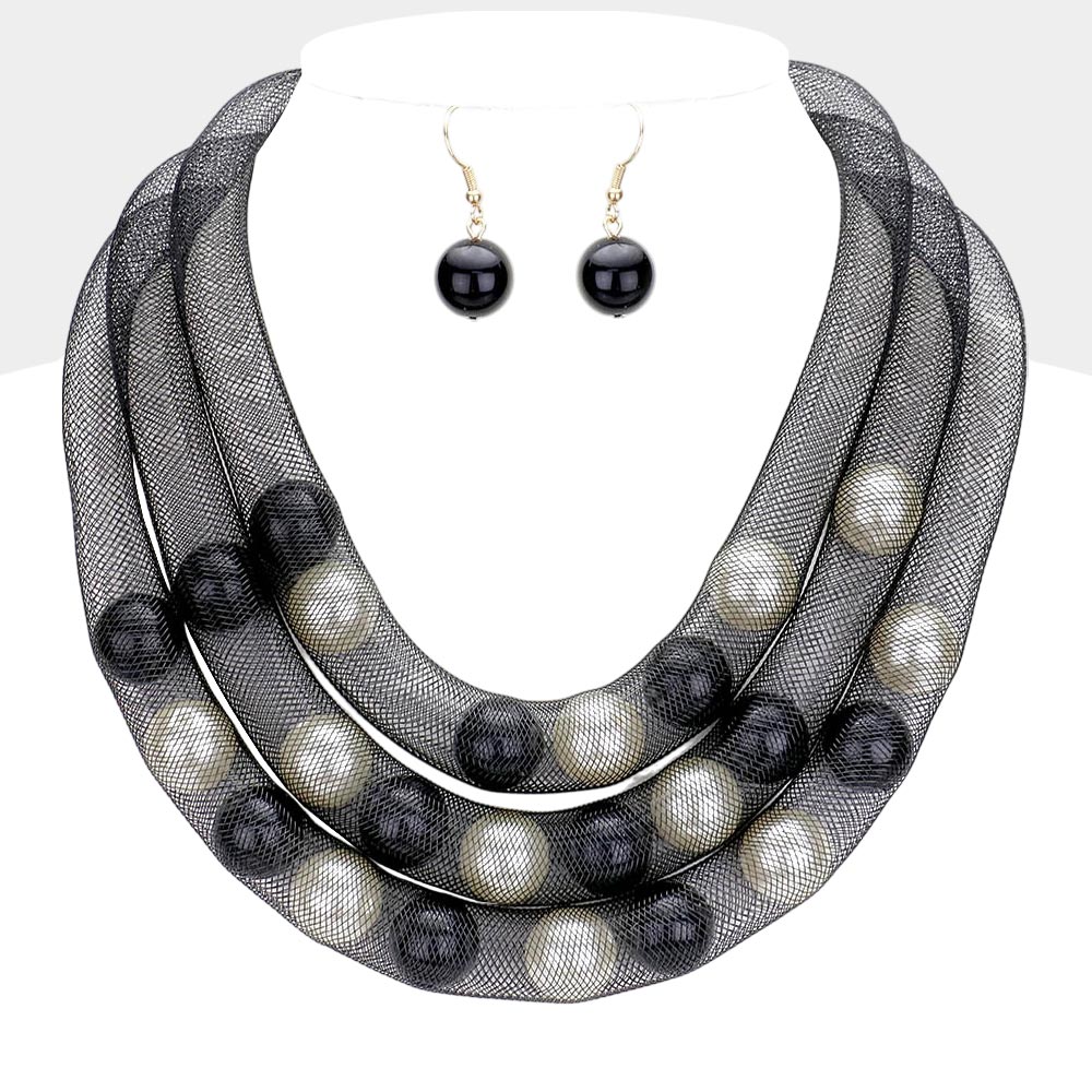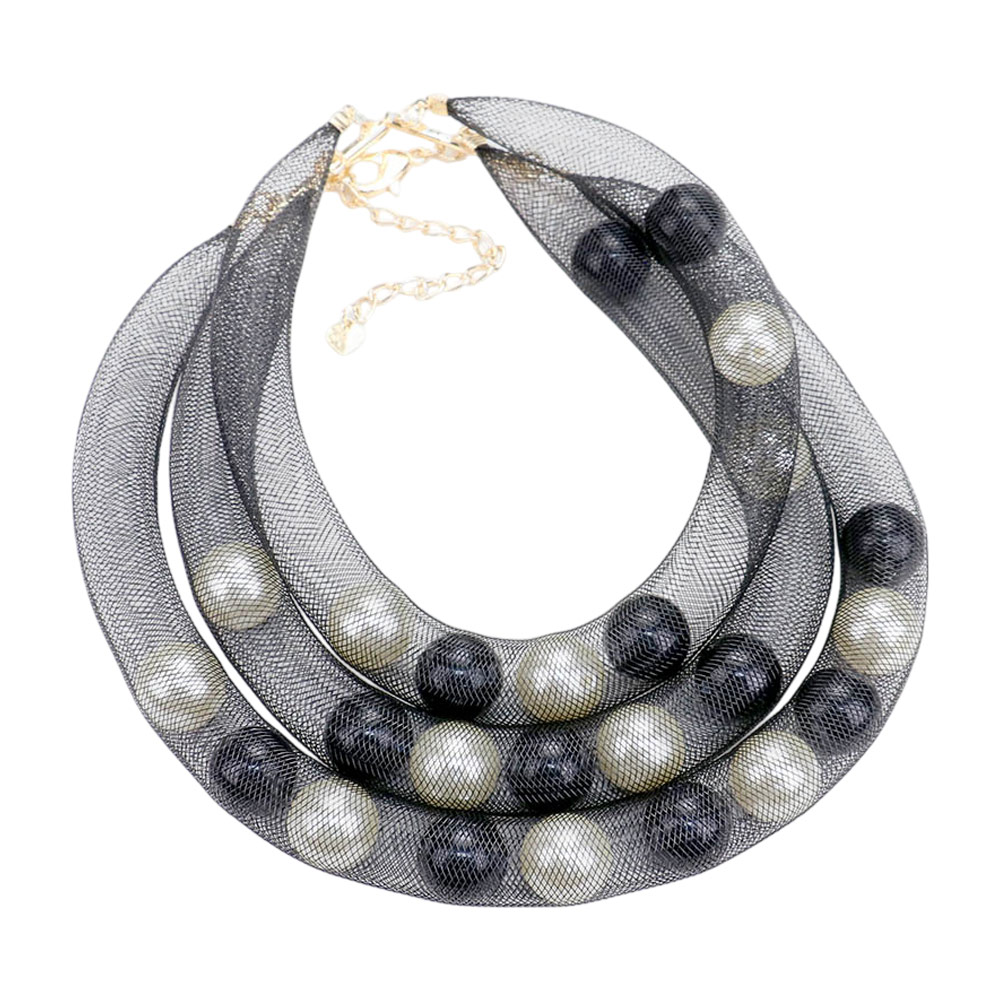 Brushed Metal Heart Cross Pearl Charm Station Chunky Necklace