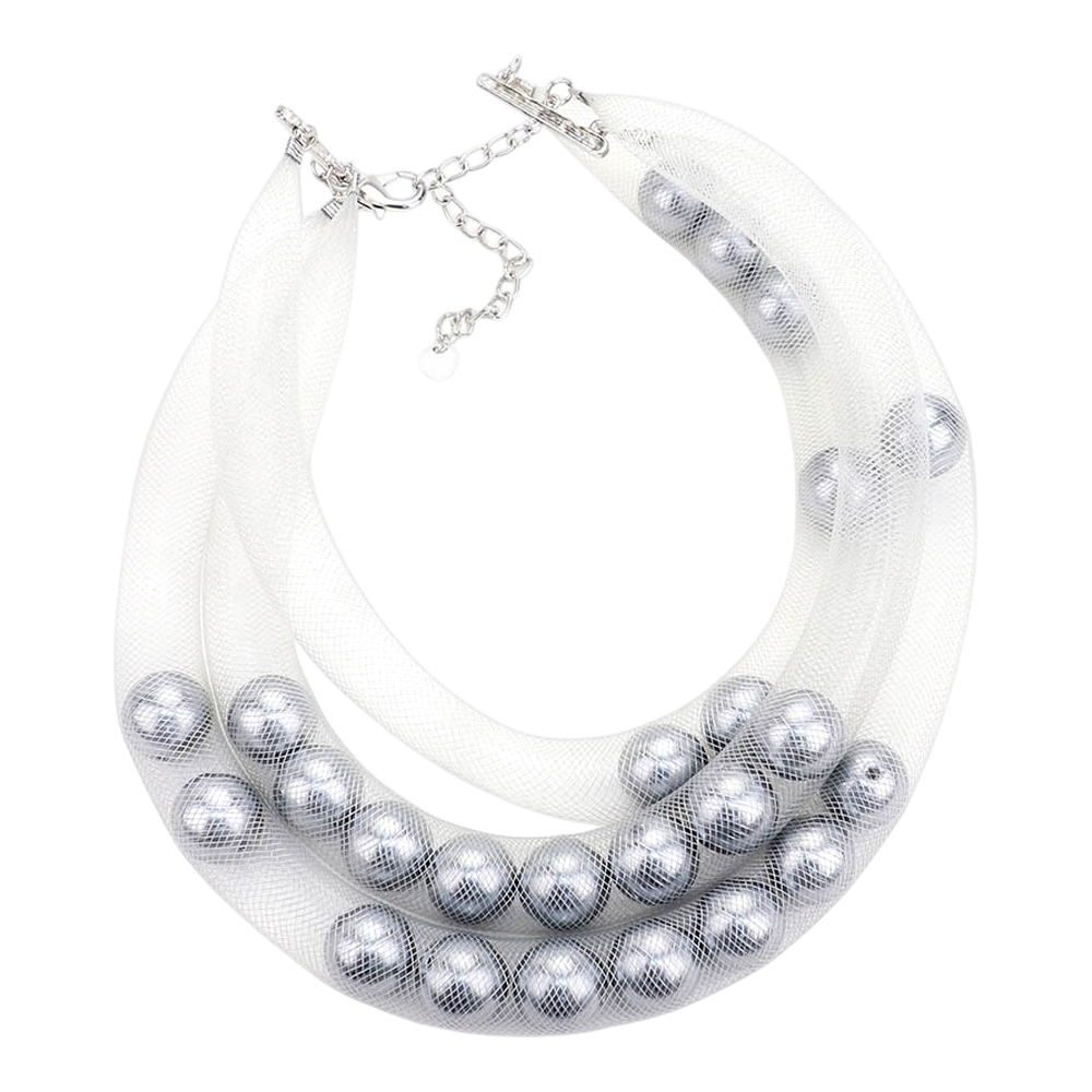 Pearl Accented Triple Layered Mesh Bib Necklace