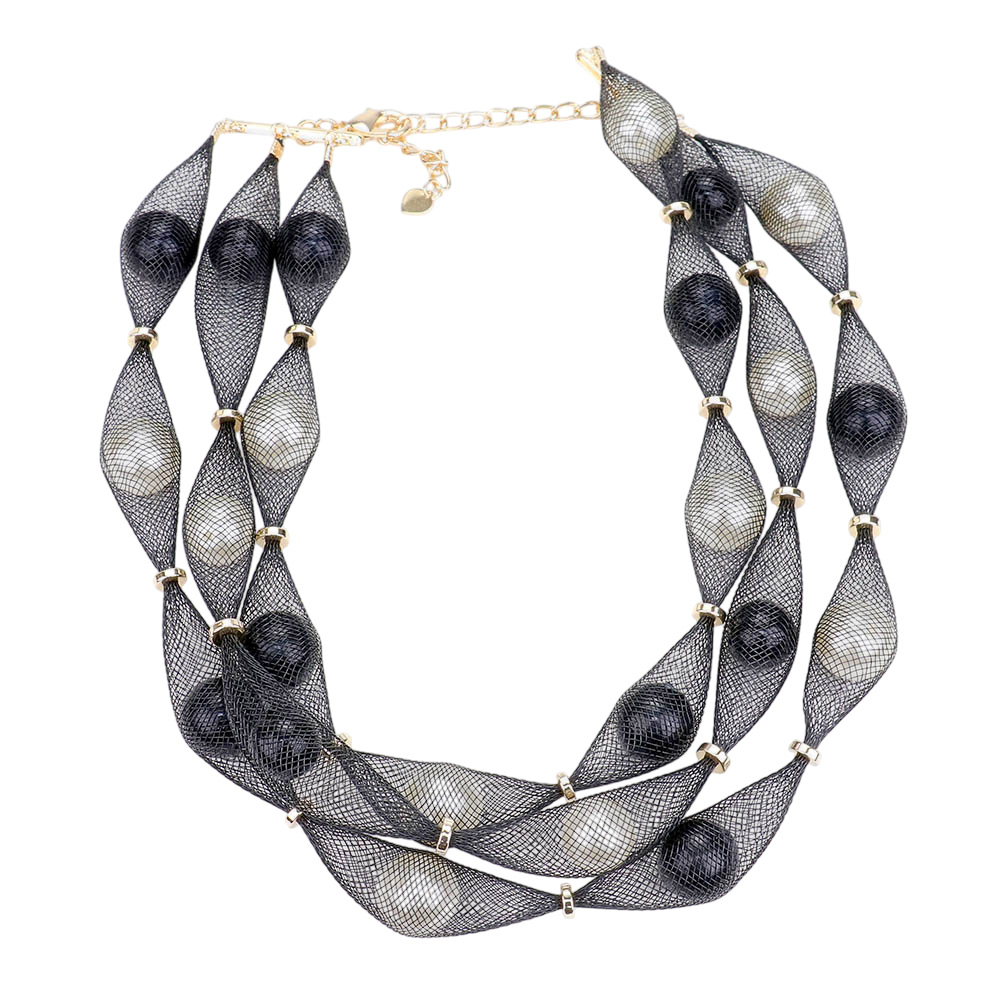 Pearl Accented Triple Layered Mesh Bib Necklace