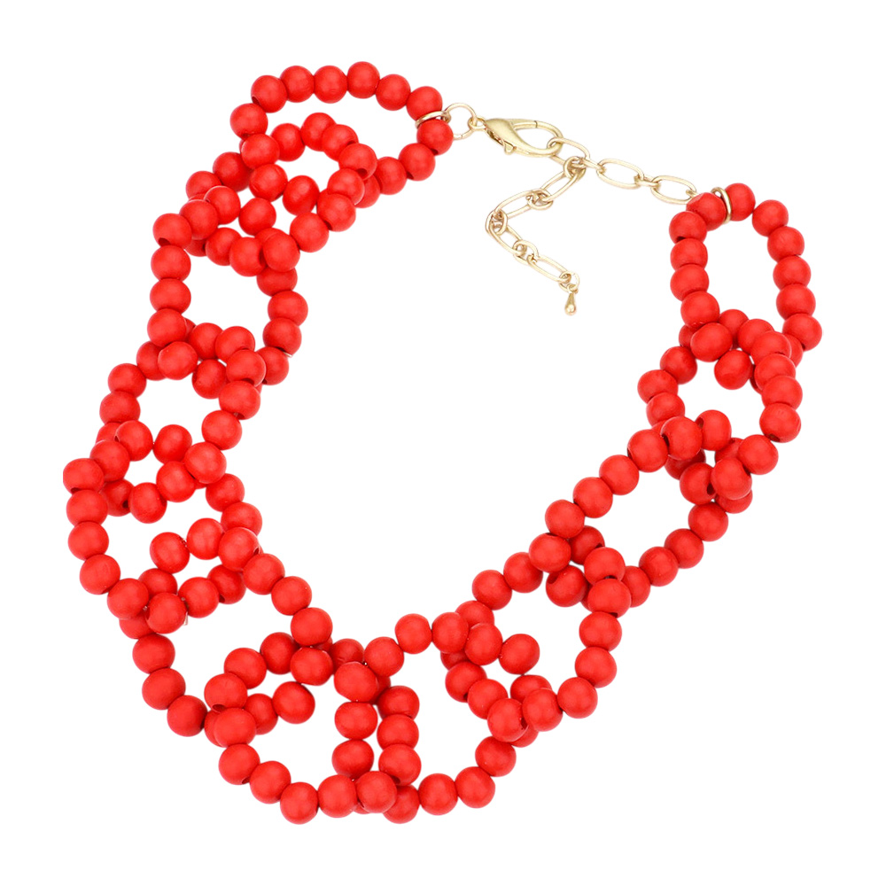 Wood Beaded Open Oval Link Necklace