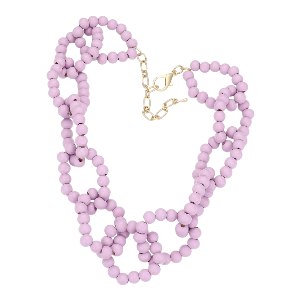 Colored Wood Open Metal Oval Link Triple Layered Necklace