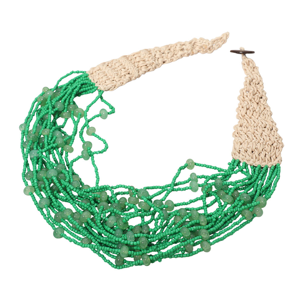 Woven Detail Multi Strand Seed Beaded Collar Statement Necklace