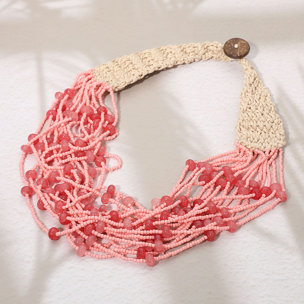 Woven Detail Multi Strand Seed Beaded Collar Statement Necklace