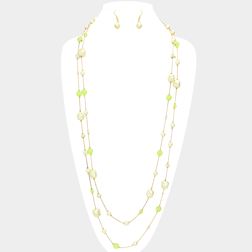 "Believe" Cross Key Lock Pearl Pendants Long Necklace