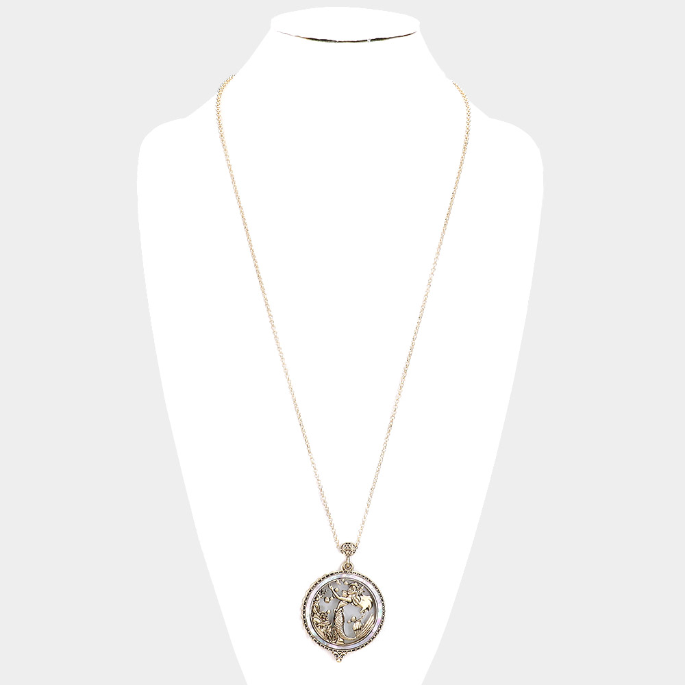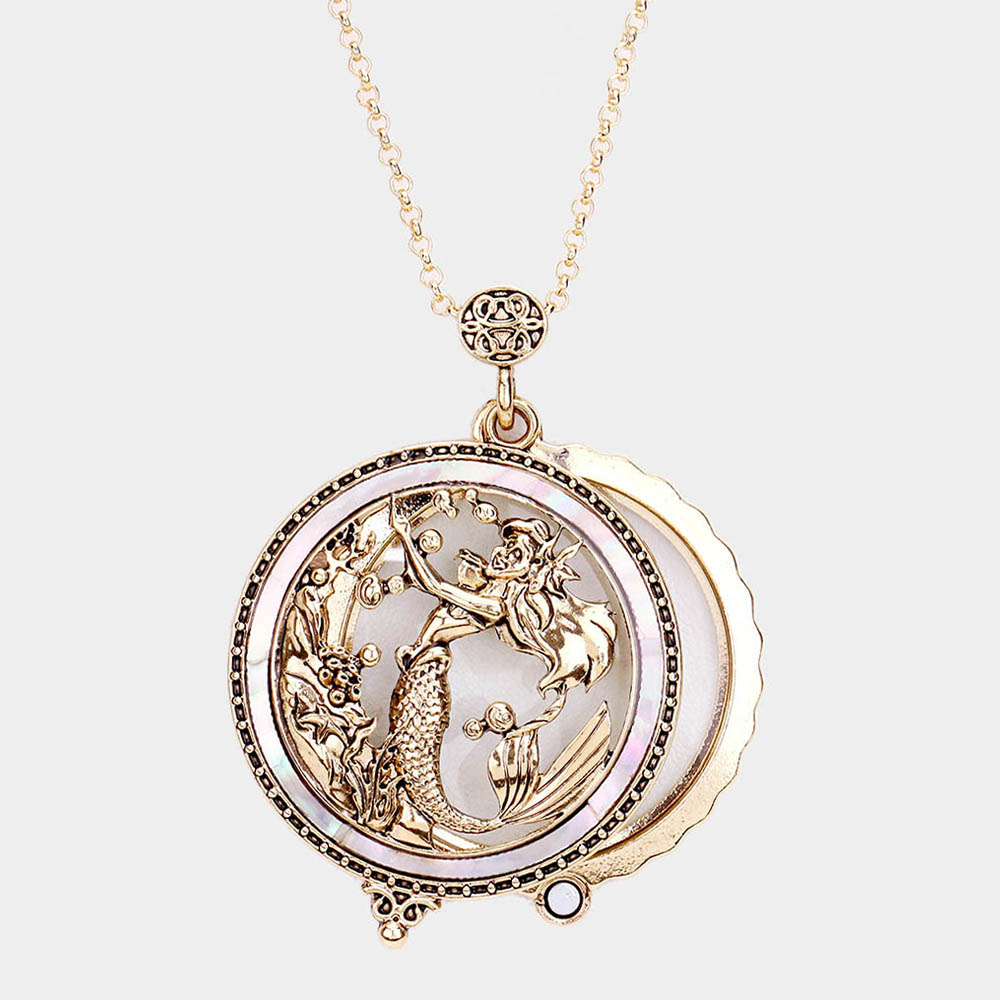 Antique Metal Mermaid Magnifying Glass Pendant Long Necklace