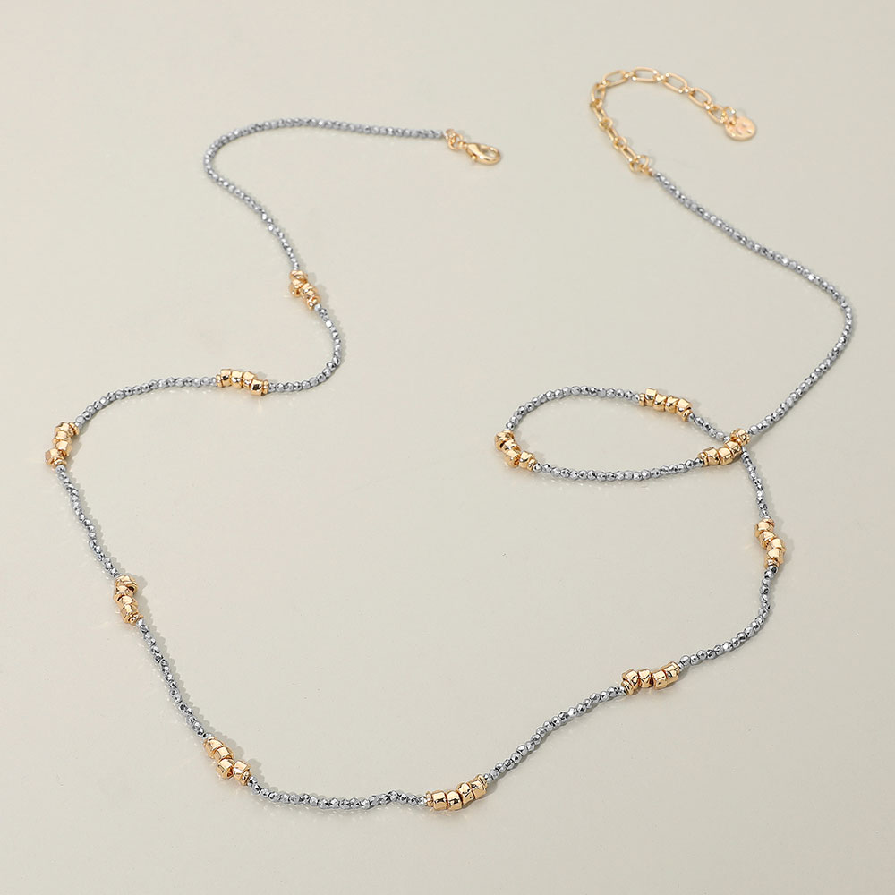 • Elevate any outfit with this delicate two-tone beaded chain necklace. Featuring a sleek design with polished bead accents, it adds a refined touch to both casual and formal ensembles. Lightweight and versatile, this necklace brings effortless elegance to everyday style.