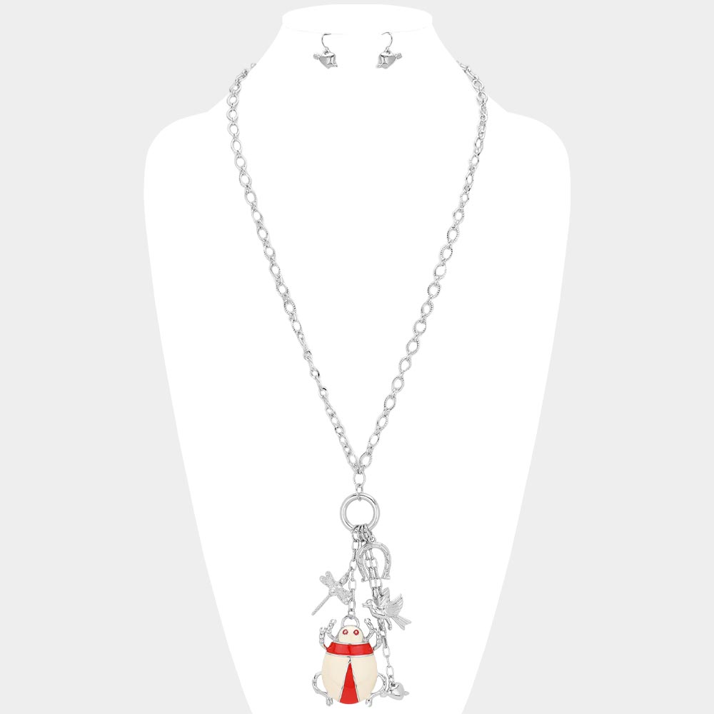Enamel Ladybug Metal Bird Dragonfly Heart Horseshoe Pendant Long Necklace