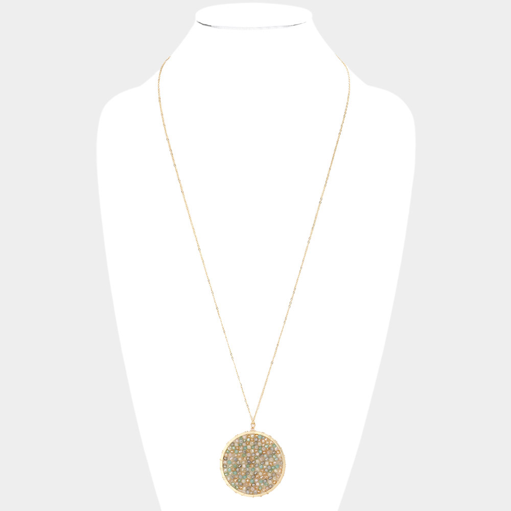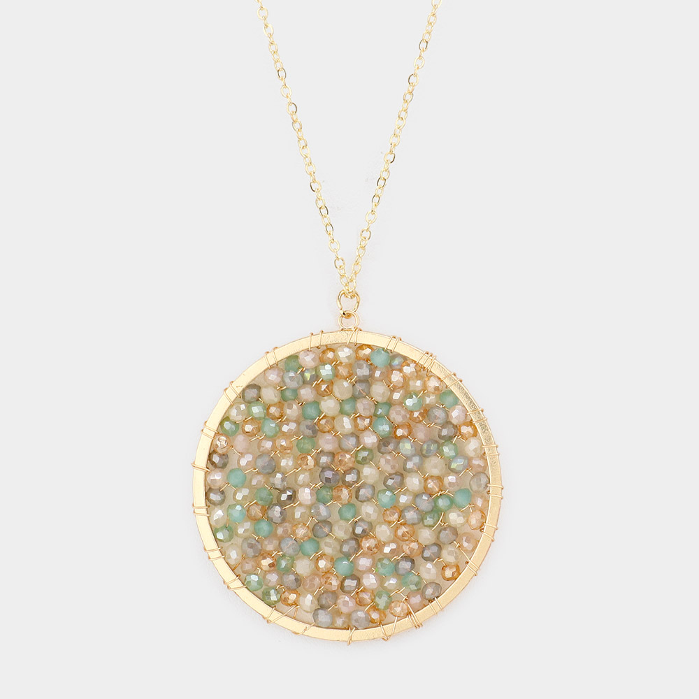 Faceted Bead Wrapped Round Pendant Long Necklace