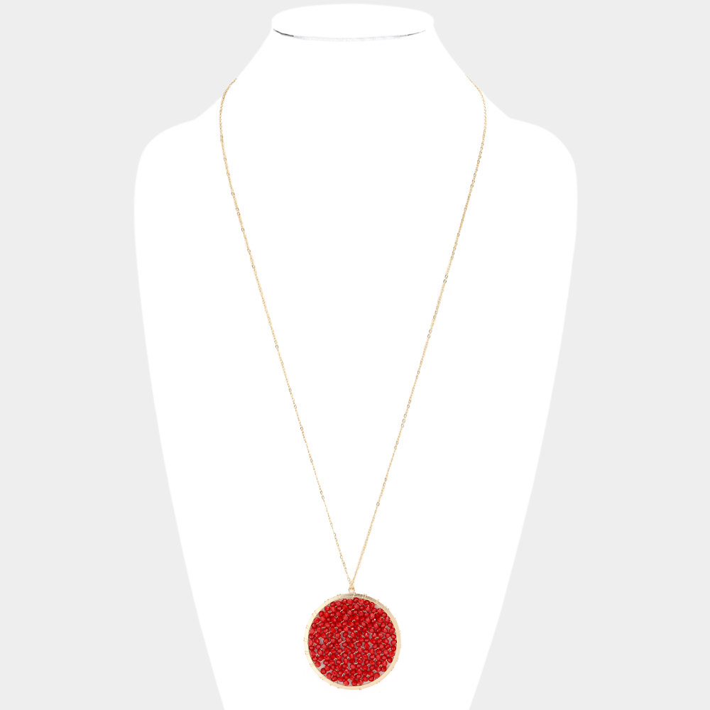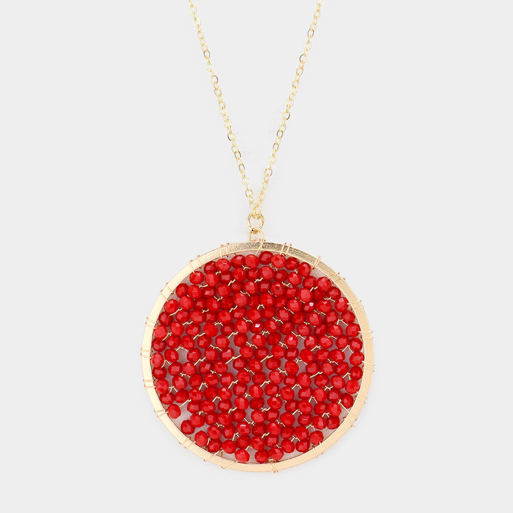 Faceted Bead Wrapped Round Pendant Long Necklace