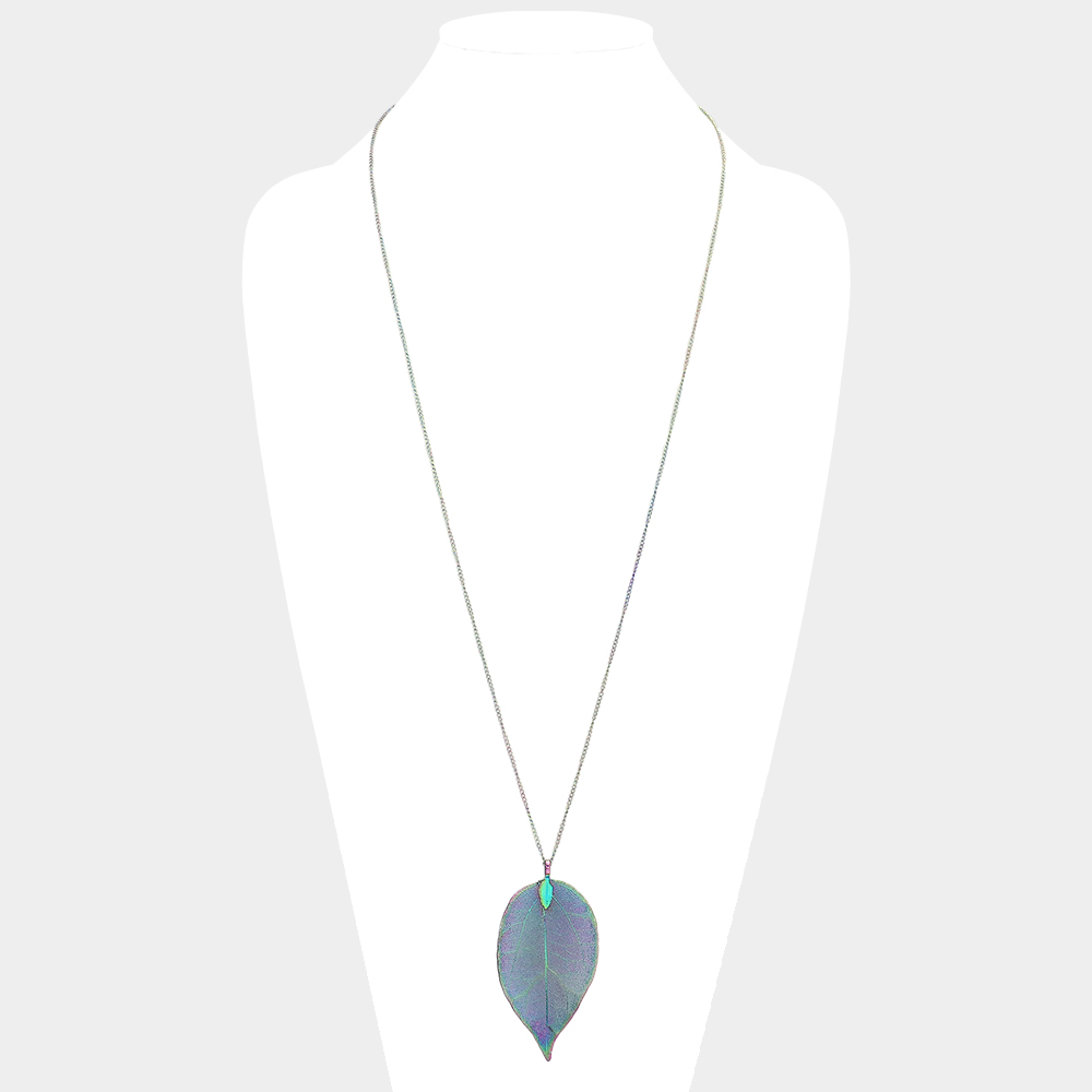 Natural Dipped Filigree Leaf Pendant Long Necklace