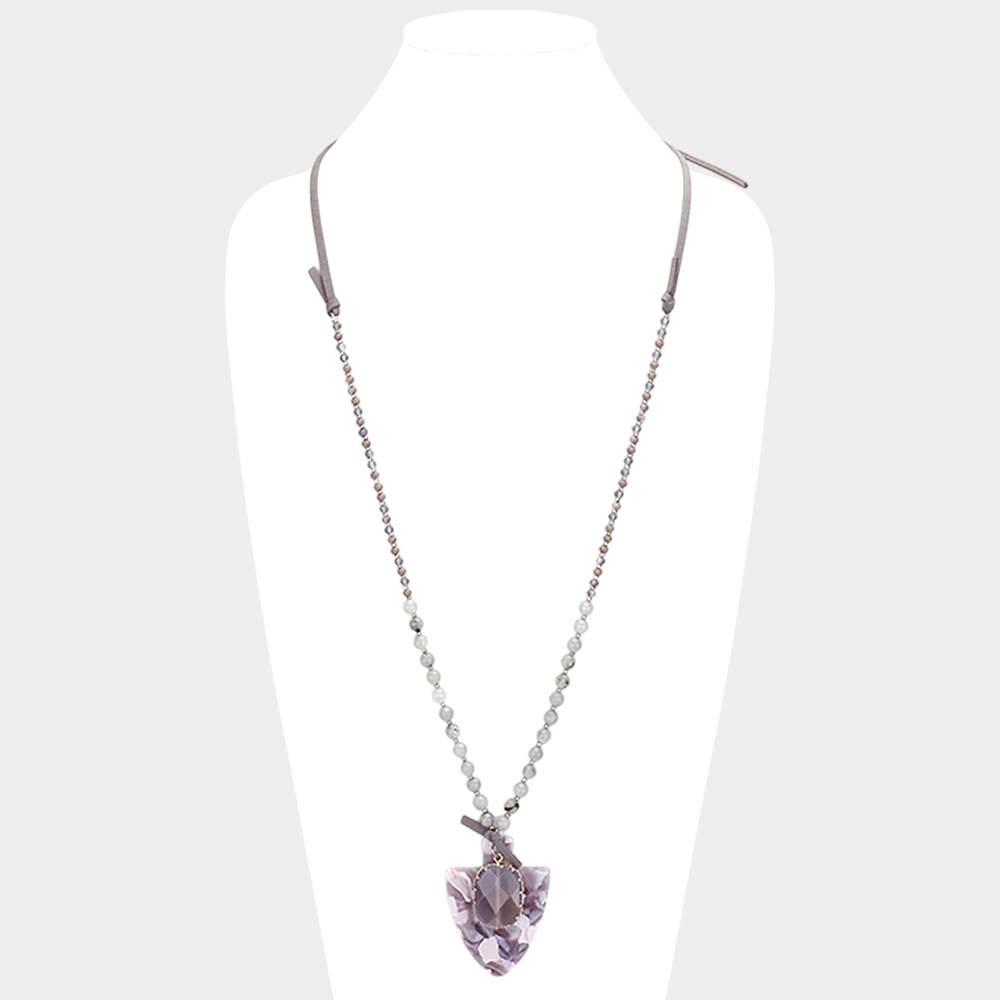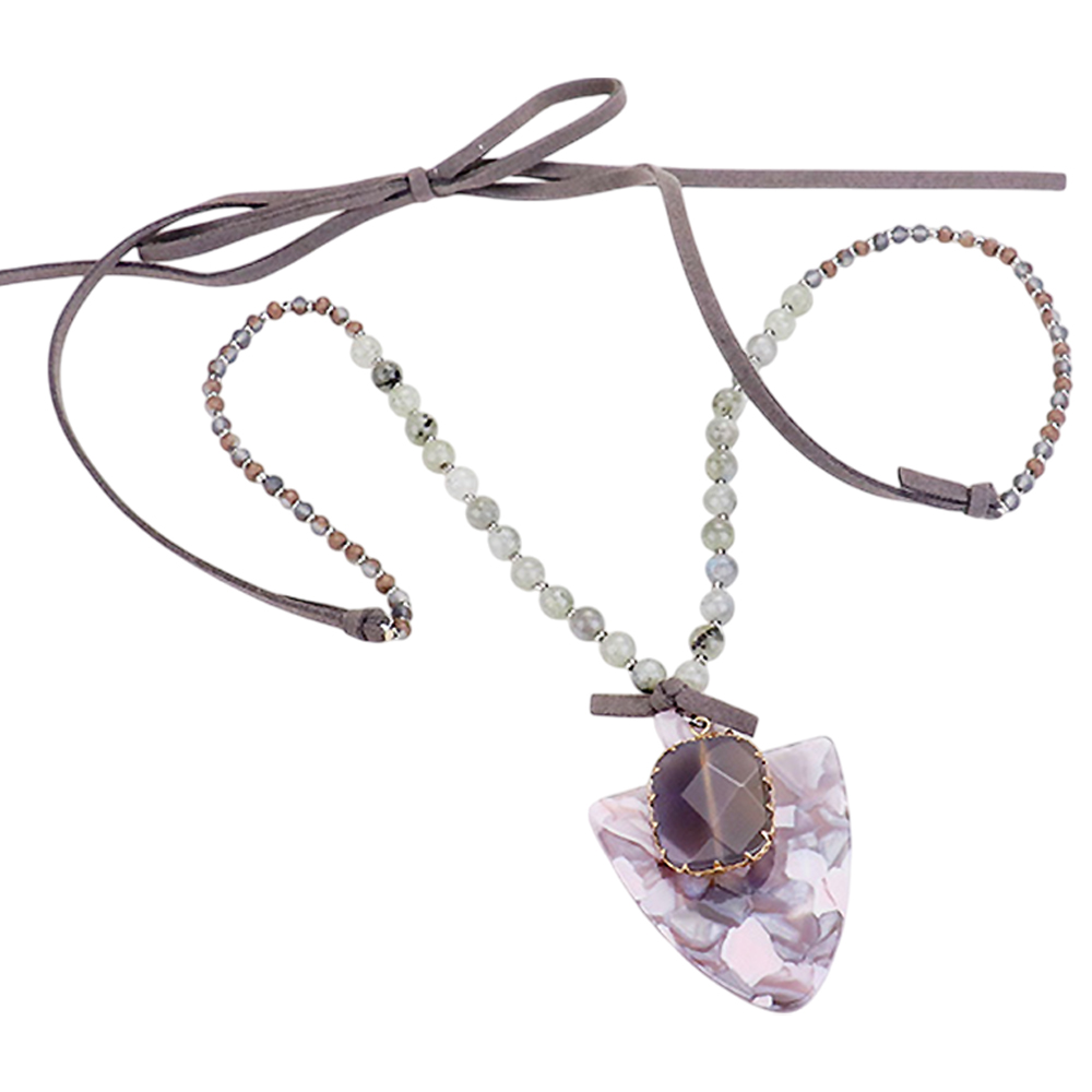 Natural Stone Crystal Celluloid Acetate Suede Adjustable Necklace