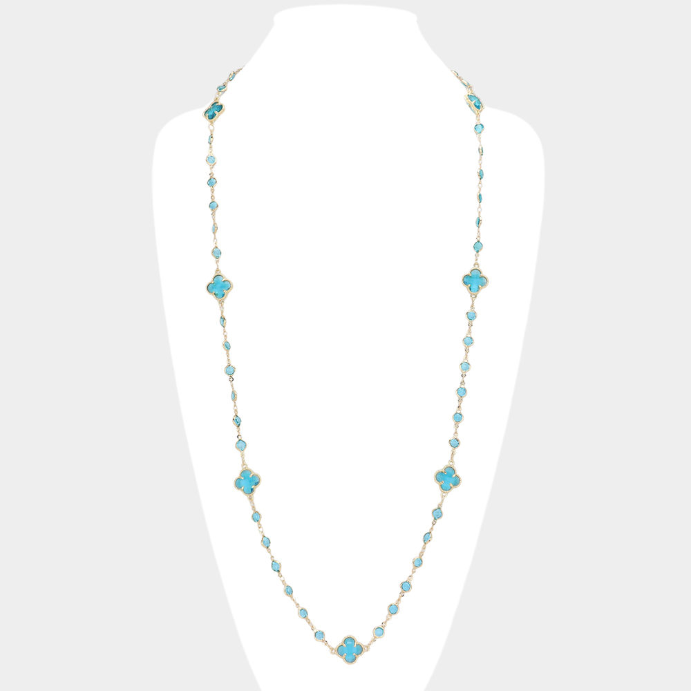 3PCS - Semi Precious Quatrefoil Metal Band Mixed Rings