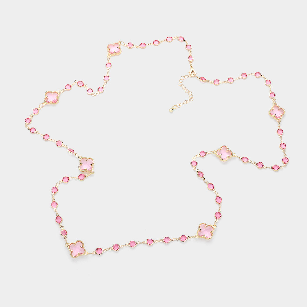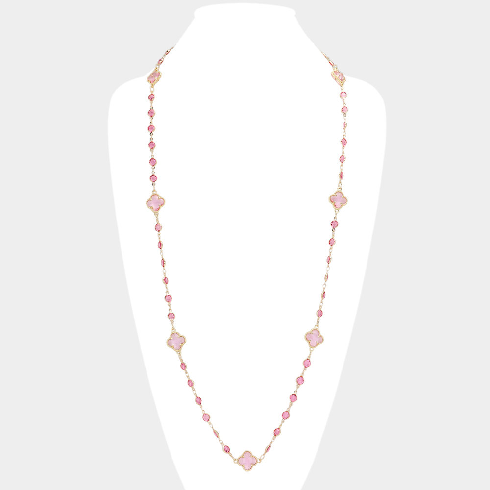 Gold Dipped Natural Stone Quatrefoil Charm Bubble Chain Bracelet