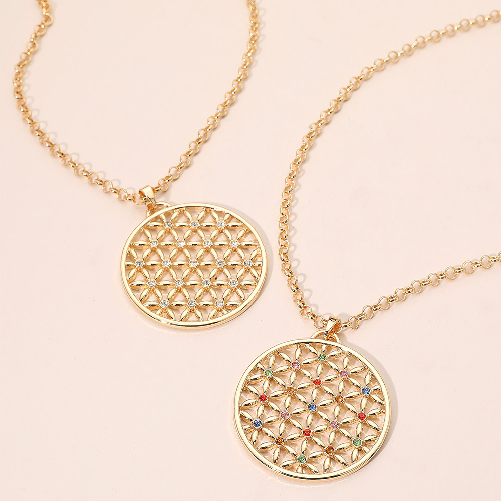 Rhinestone Accented Geometric Floral Circle Pendant Long Necklace