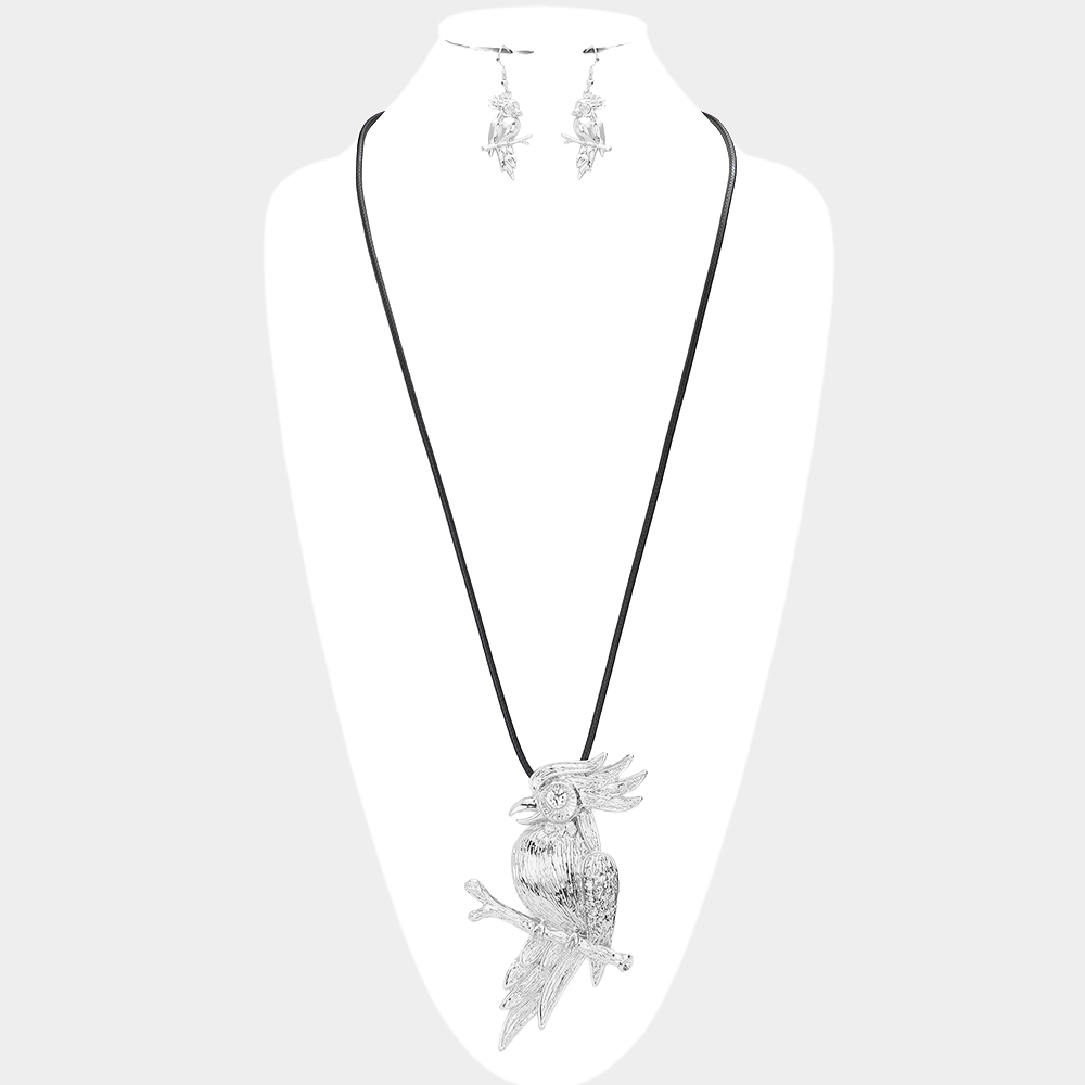 Stone Pointed Metal Parrot Pendant Long Necklace