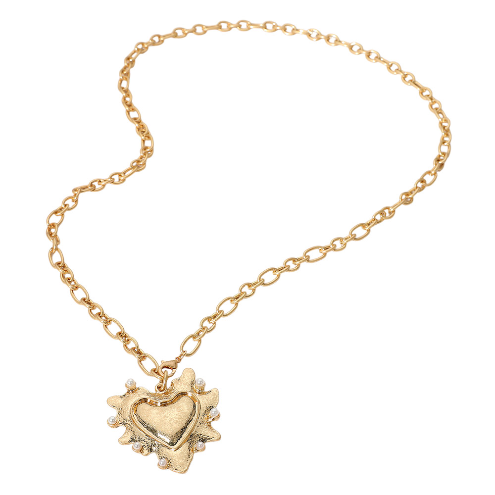 Details • Necklace Size : 32" L • Pendant Size : 2" X 2.25" • Make a statement with this heart pendant necklace featuring a bold chain and artistic charm. A perfect mix of modern edge and timeless symbolism, this piece adds personality and style to any outfit, from casual layers to standout evening looks. • Lead and Nickel Compliant