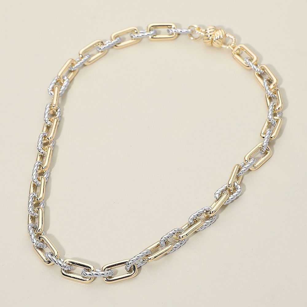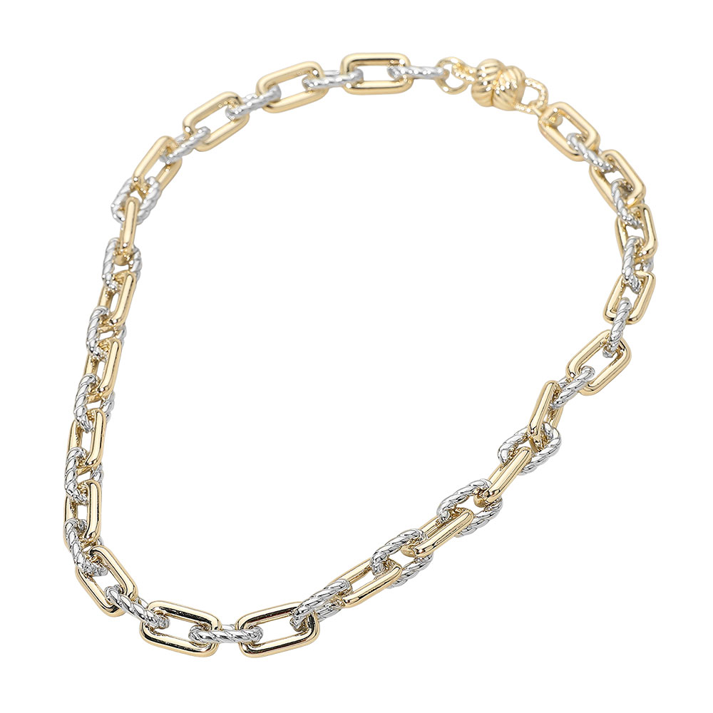 14K Gold Plated Two Tone Chunky Textured Mixed Link Chain Necklace