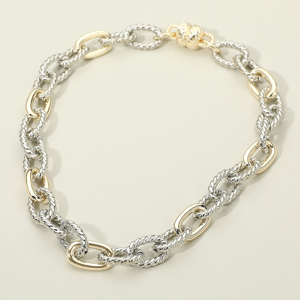 14K Gold Plated Chunky Two Tone Crisscross Oval Ring Link Chain Necklace