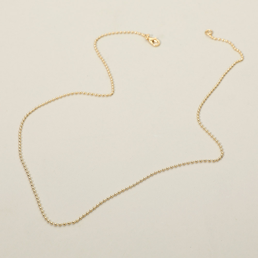 Details • Necklace Size : 18" L • Decor Size : 0.1" L (2mm) • Elegant bead chain necklace featuring small, polished round links that create a smooth and refined texture. A timeless minimalist piece perfect for layering or wearing solo, adding effortless shine to both casual and dressy looks. • Gold Filled • Lead and Nickel Compliant • Made In Brazil