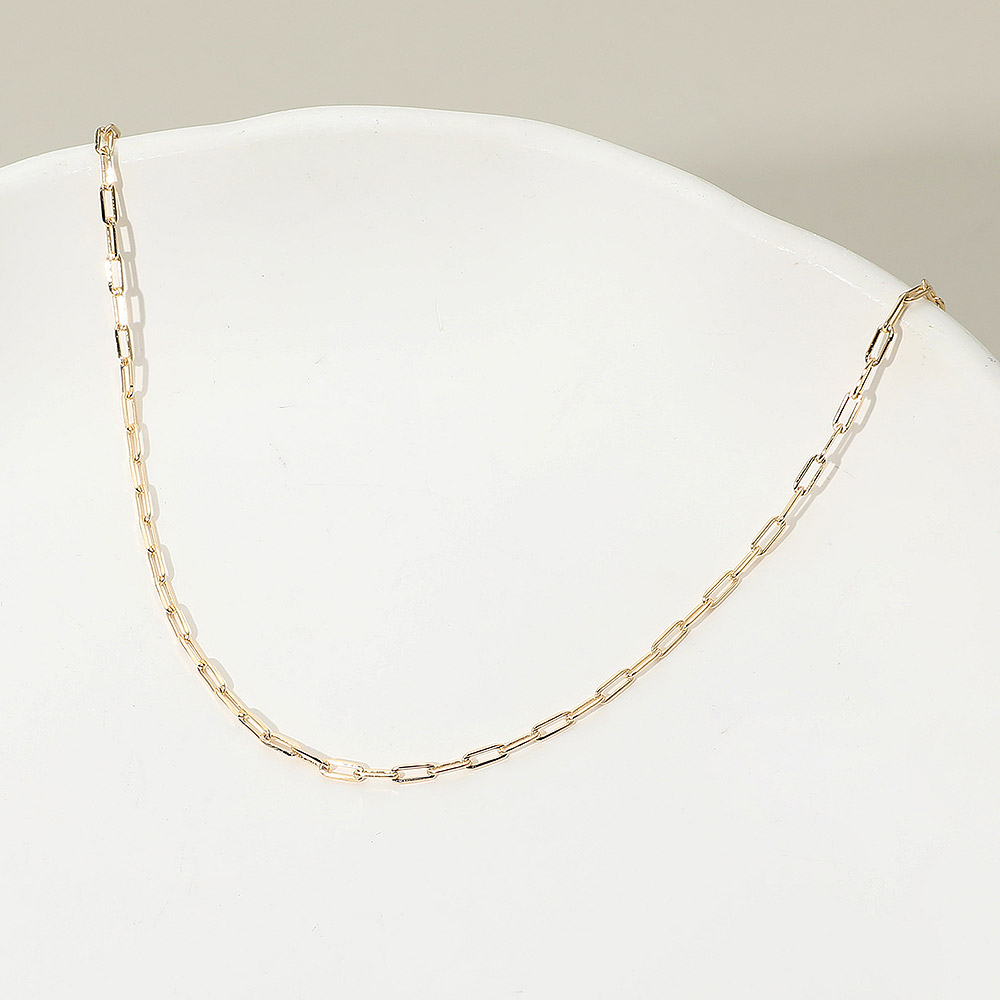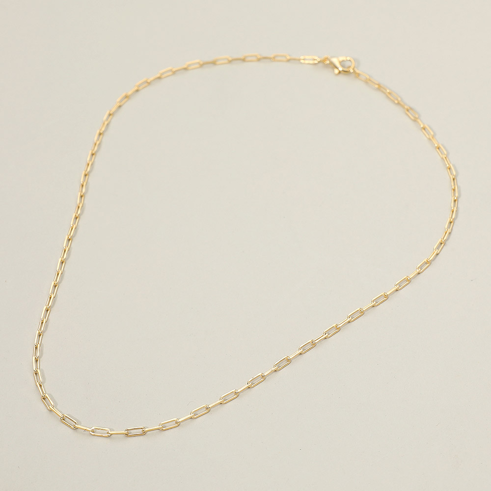 Details • Necklace Size : 16" L • Decor Size : 0.1" L (2mm) • Sleek paperclip chain necklace designed with a refined geometric pattern. Its lightweight structure and polished finish add a touch of modern sophistication, perfect for everyday wear or layering with other necklaces for a chic, contemporary look. • Lead and Nickel Compliant • Gold Filled • Made In Brazil