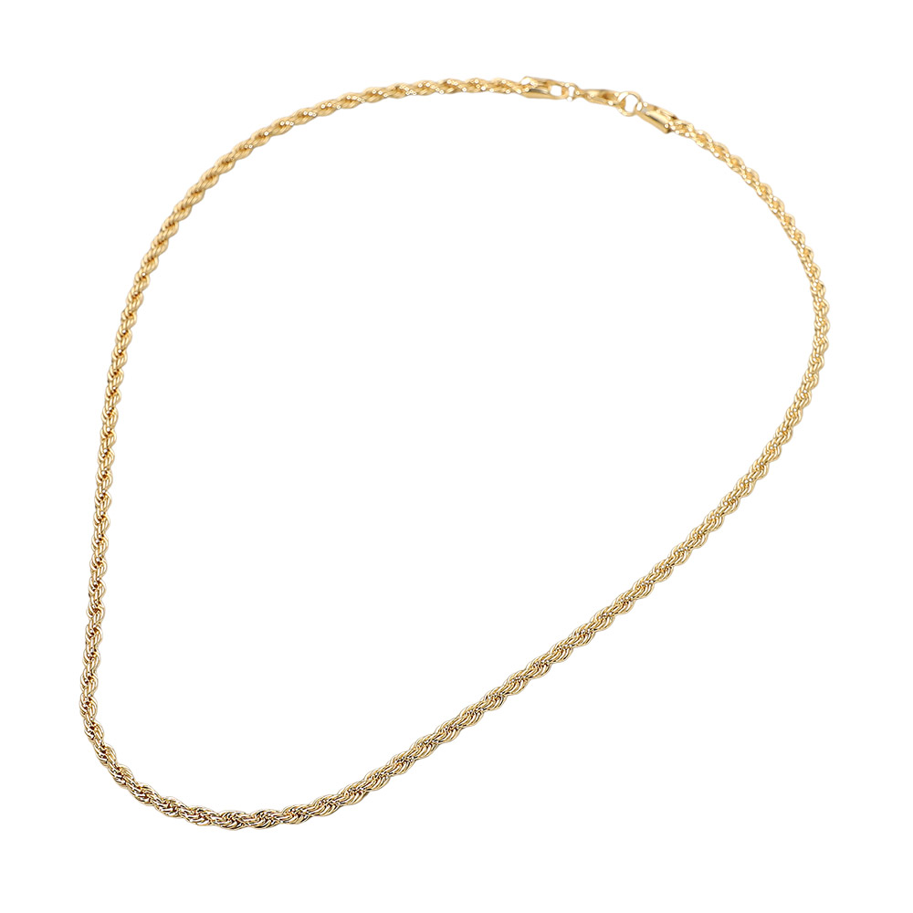 Details • Necklace Size : 18" L • Decor Size : 0.1" L (3mm) • Classic twisted rope chain necklace featuring delicate braided links that catch the light beautifully. Its textured design adds depth and shine, making it a timeless accessory for elegant layering or a polished standalone look. • Lead and Nickel Compliant • Gold Filled • Made In Brazil