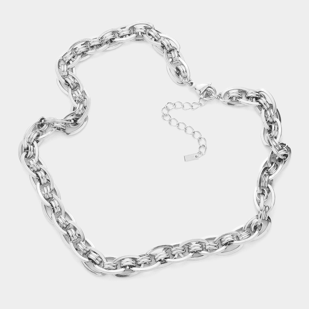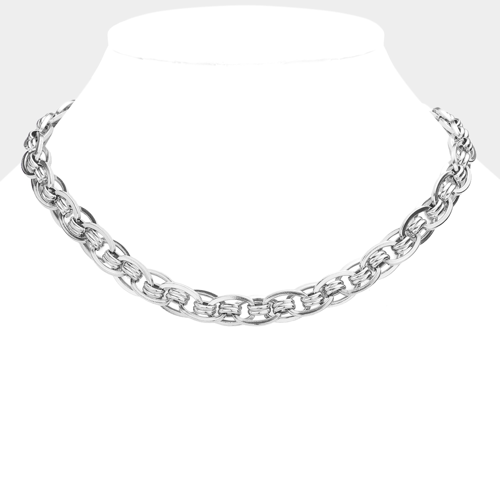 18K White Gold Dipped Stainless Steel Premium Handmade Chain Necklace