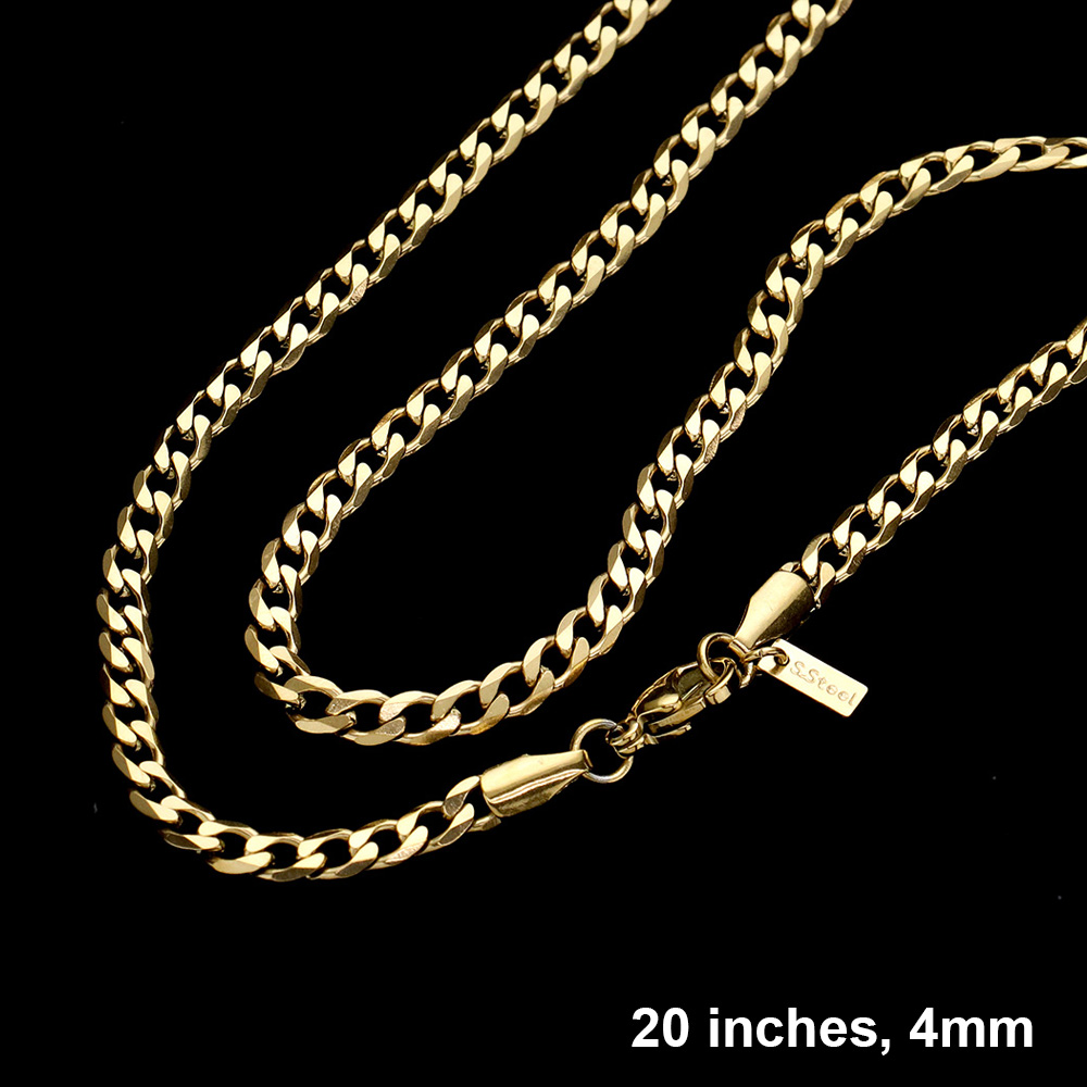 20 INCH, 4mm Stainless Steel Diamond Cut Cuban Chain Necklace