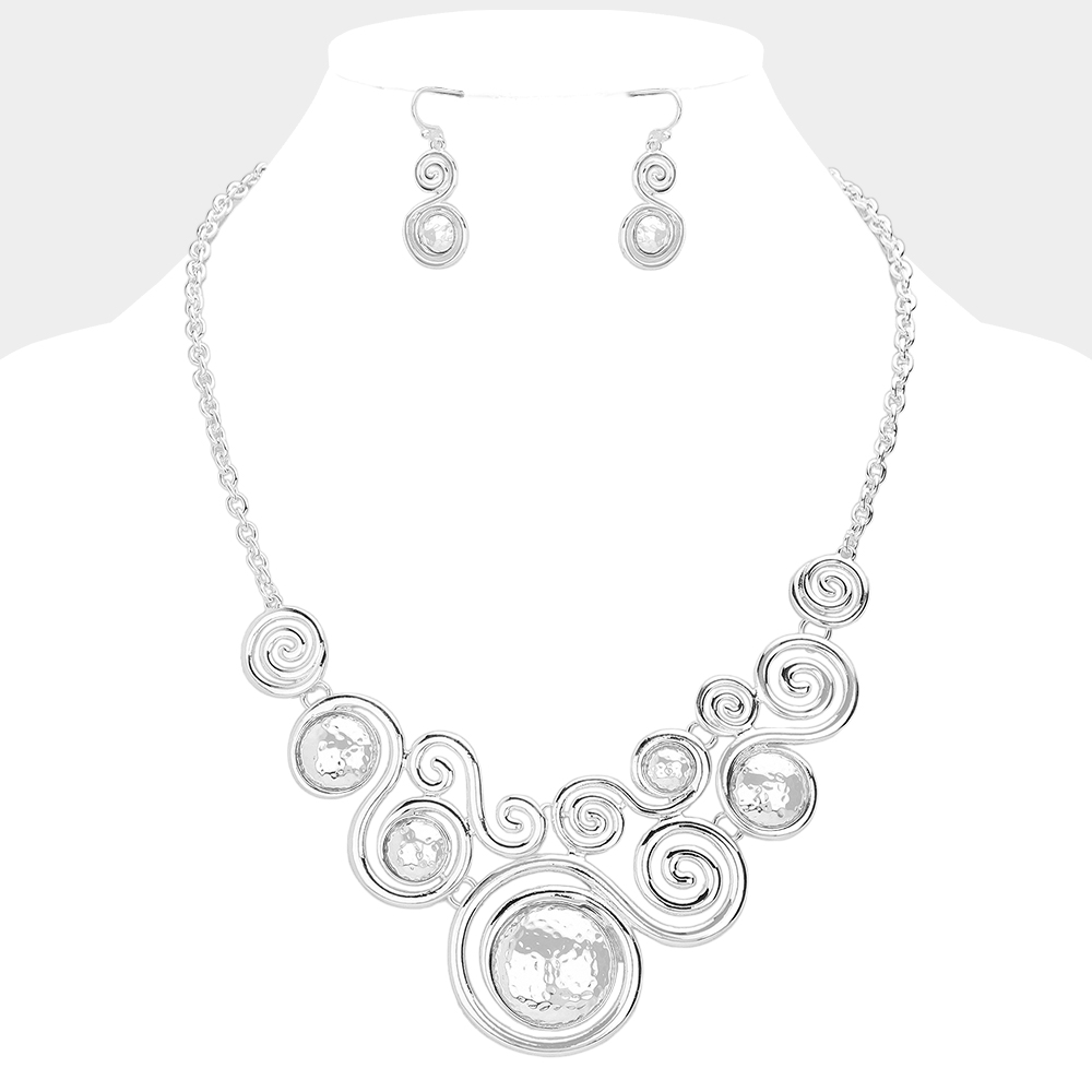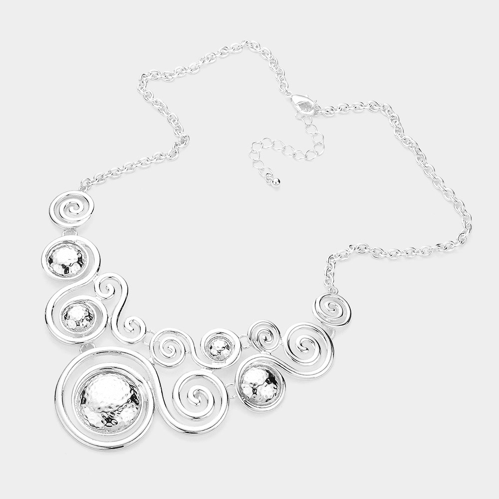 Abstract Swirl Metal Pendant Statement Necklace