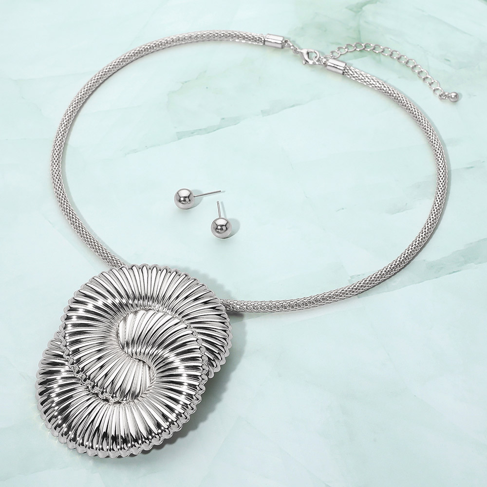 Bold Metal Spiral Pendant Accent Statement Necklace
