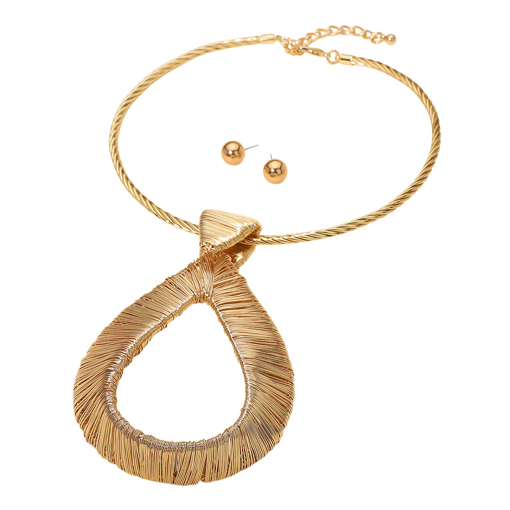 Bold Metal Wire Wrapped Teardrop Pendant Statement Necklace
