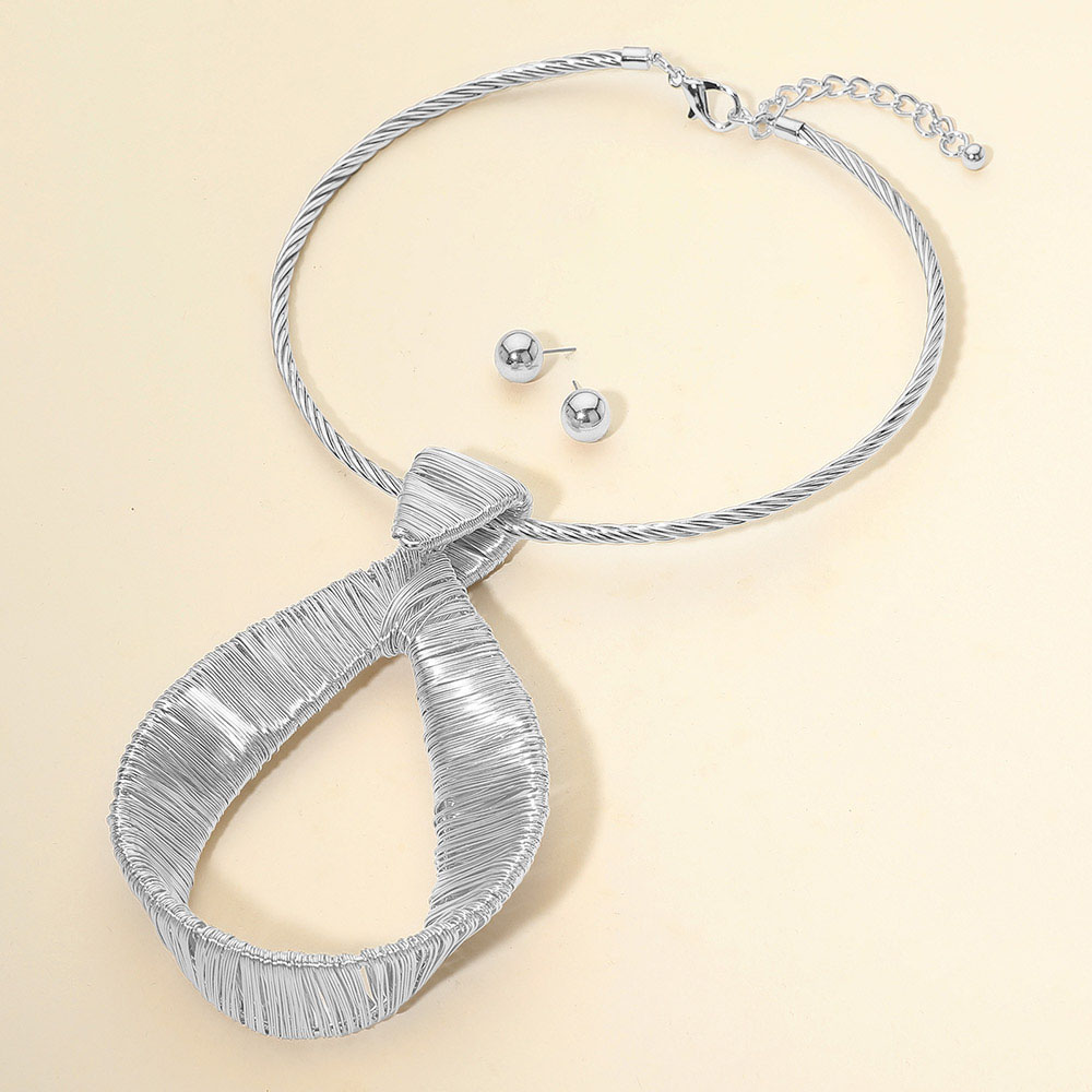Bold Metal Wire Wrapped Teardrop Pendant Statement Necklace