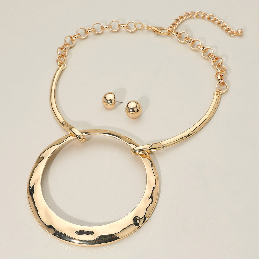 Details • Necklace Size : 17" + 3" L • Decor Size : 3.8" L • Earrings Size : 0.5" L • Elevate your style with this modern circle necklace and matching stud earring set designed for effortless sophistication. Featuring a bold open-ring pendant and sleek chain detail, it’s perfect for daily wear or special occasions, offering versatile elegance and a polished, contemporary finishing touch. • Lead and Nickel Compliant