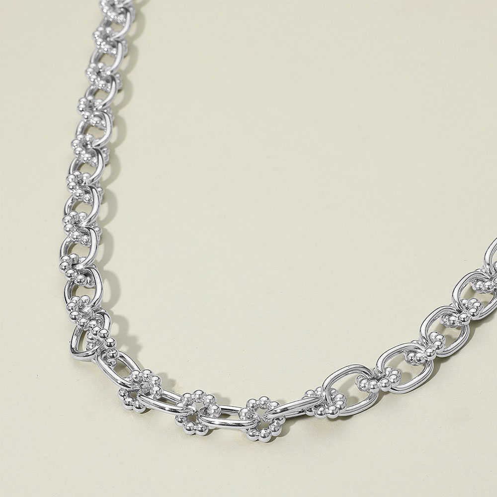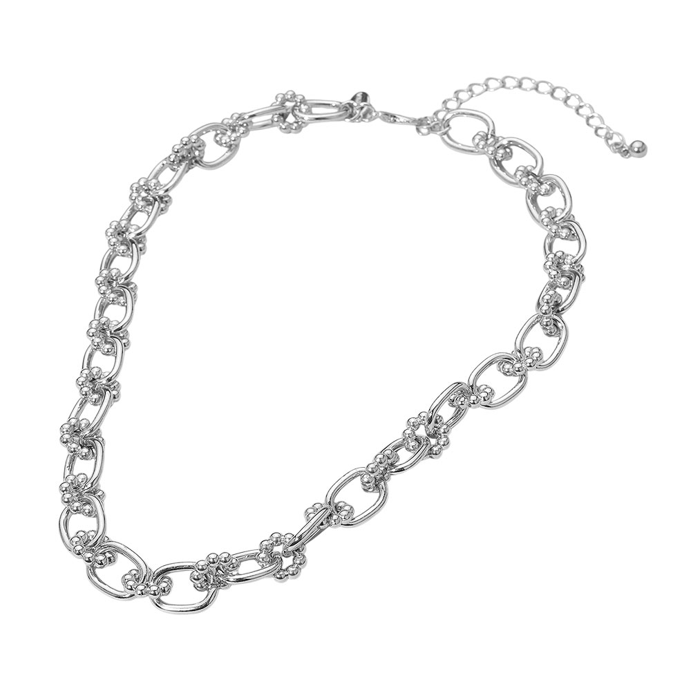 Details • Necklace Size : 17" + 3" L • Decor Size : 0.5" L • Add a touch of elegance with this floral link chain necklace, featuring a series of interconnected links adorned with delicate floral accents. Its lightweight yet statement design makes it perfect for layering or wearing solo to elevate any casual or formal look effortlessly. • Lead and Nickel Compliant