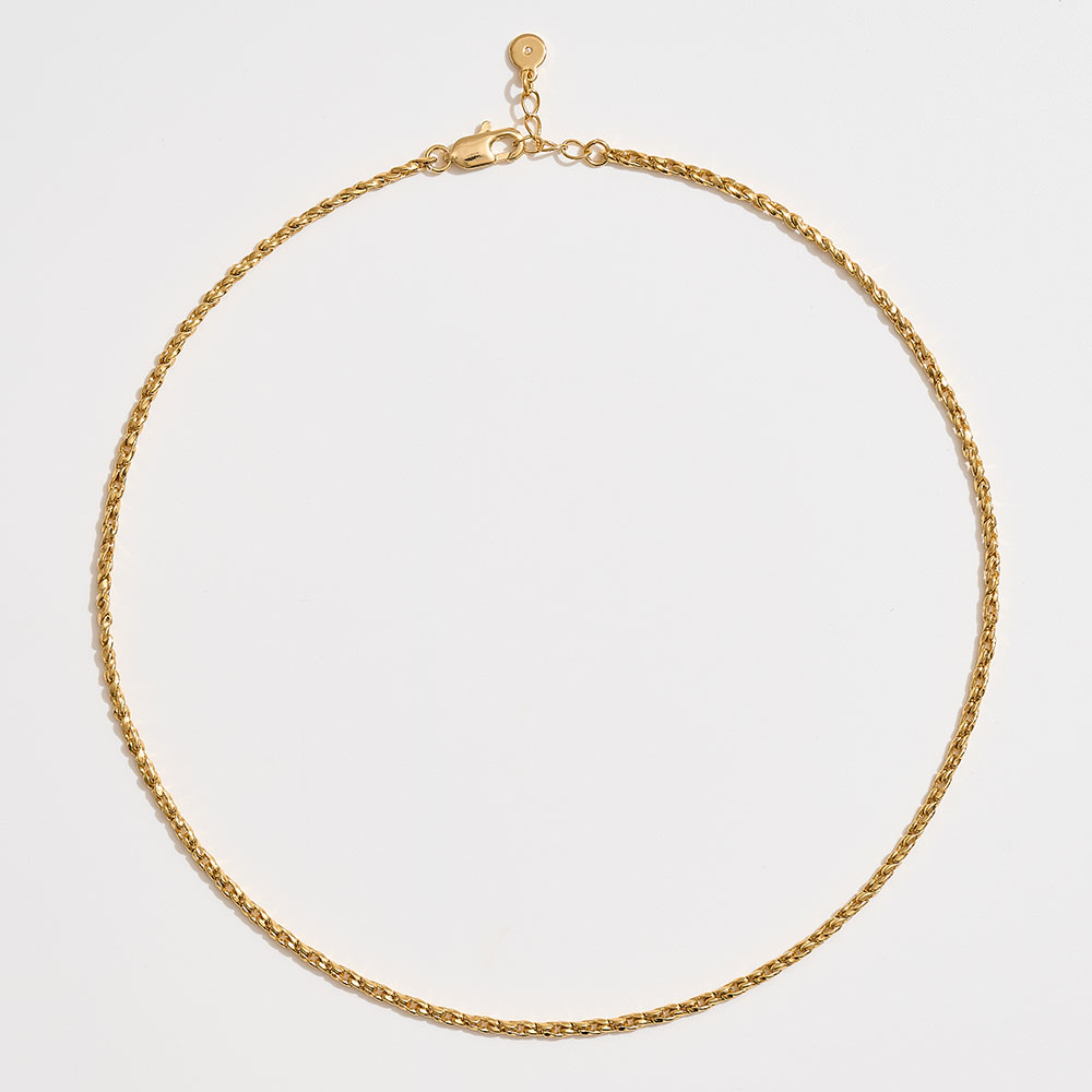 Details • Necklace Size : 16" + 1" L • Decor Size : 0.2" L • Add classic elegance to your look with this rope chain necklace, designed with intricate twisted links that catch the light beautifully. Perfect for layering or wearing solo, it’s a versatile staple that transitions effortlessly from everyday wear to special occasions. • Hypoallergenic • Made In Korea • Gold Dipped • Brass