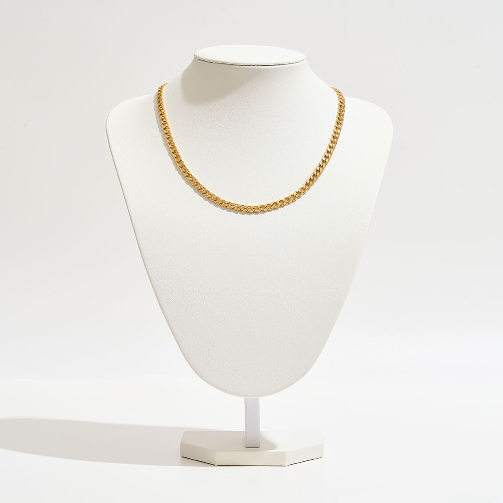 Details • Necklace Size : 18" + 1" L • Decor Size : 0.2" L • Bold and refined, this curb chain necklace is crafted in durable brass for a polished look. The classic chain style offers versatile wear, making it perfect for layering or as a standalone statement piece. An essential accessory that elevates both casual and formal outfits. • Brass • Gold Dipped • Made In Korea