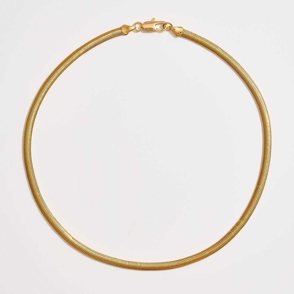 Details • Necklace Size : 18" + 1" L • Decor Size : 0.2" L • Showcase timeless elegance with this herringbone chain necklace, featuring flat V-shaped links that create a smooth, reflective surface. A versatile and sophisticated piece that can be layered or worn alone, offering a bold yet refined look perfect for both everyday wear and special occasions. • Brass • Gold Dipped • Hypoallergenic • Made In Korea