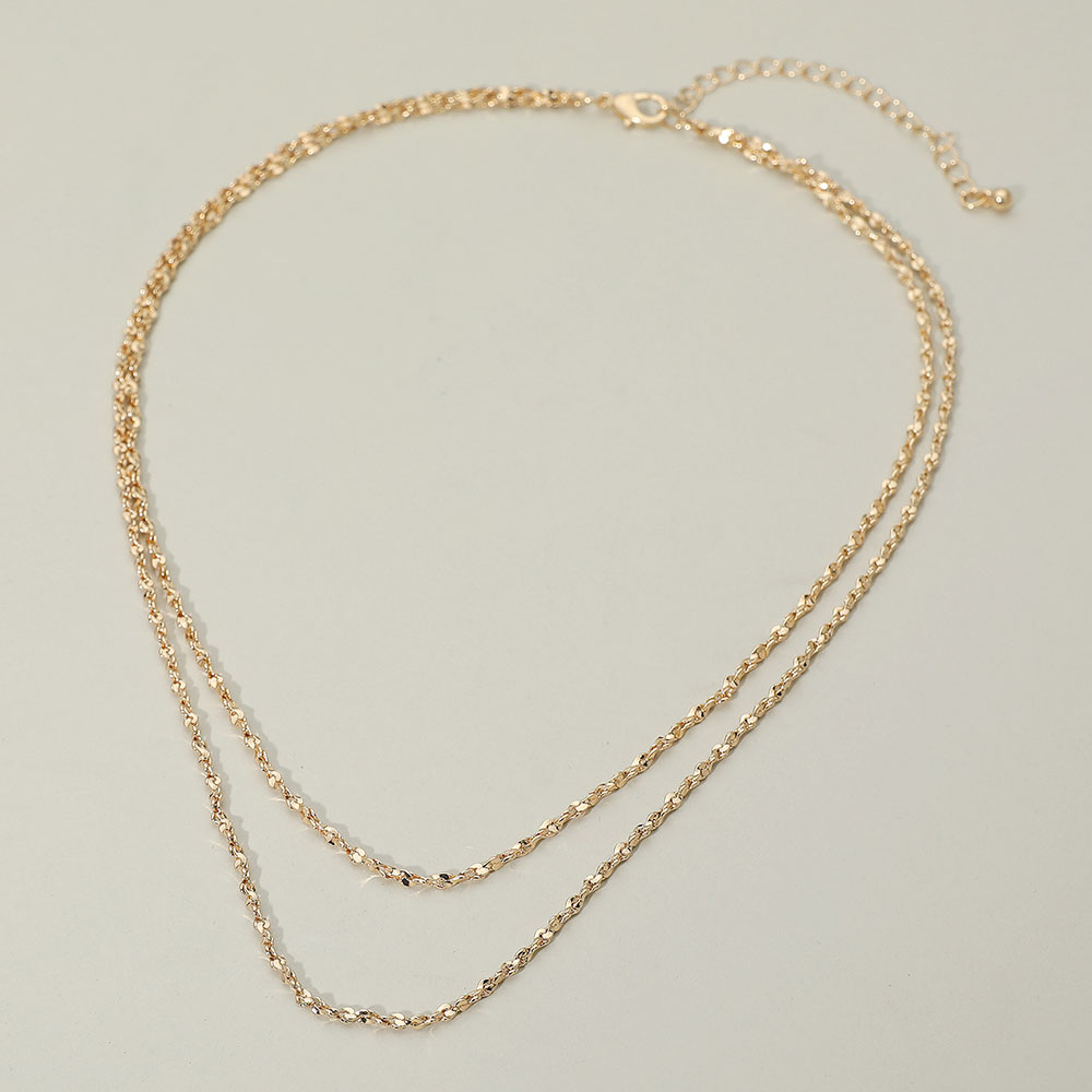Details • Necklace Size : 18" + 3" L • Decor Size : 1" L • Add timeless style to your collection with this layered twisted chain necklace featuring subtle texture and elegant design. Perfect for layering with other pieces or wearing on its own, this versatile necklace brings a chic minimalist touch to both everyday outfits and dressy occasions. • Lead and Nickel Compliant • Gold Dipped