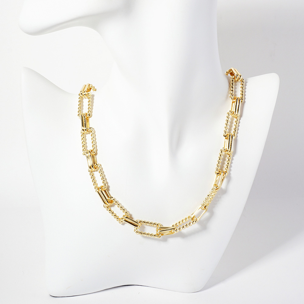 Gold Dipped Textured Rectangle Link Chain Necklace