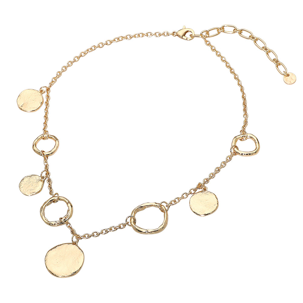 Hammered Metal Disc Charm Ring Link Necklace Hammered Metal Disc Charm Ring Link Necklace Hammered Metal Disc Charm Ring Link Necklace