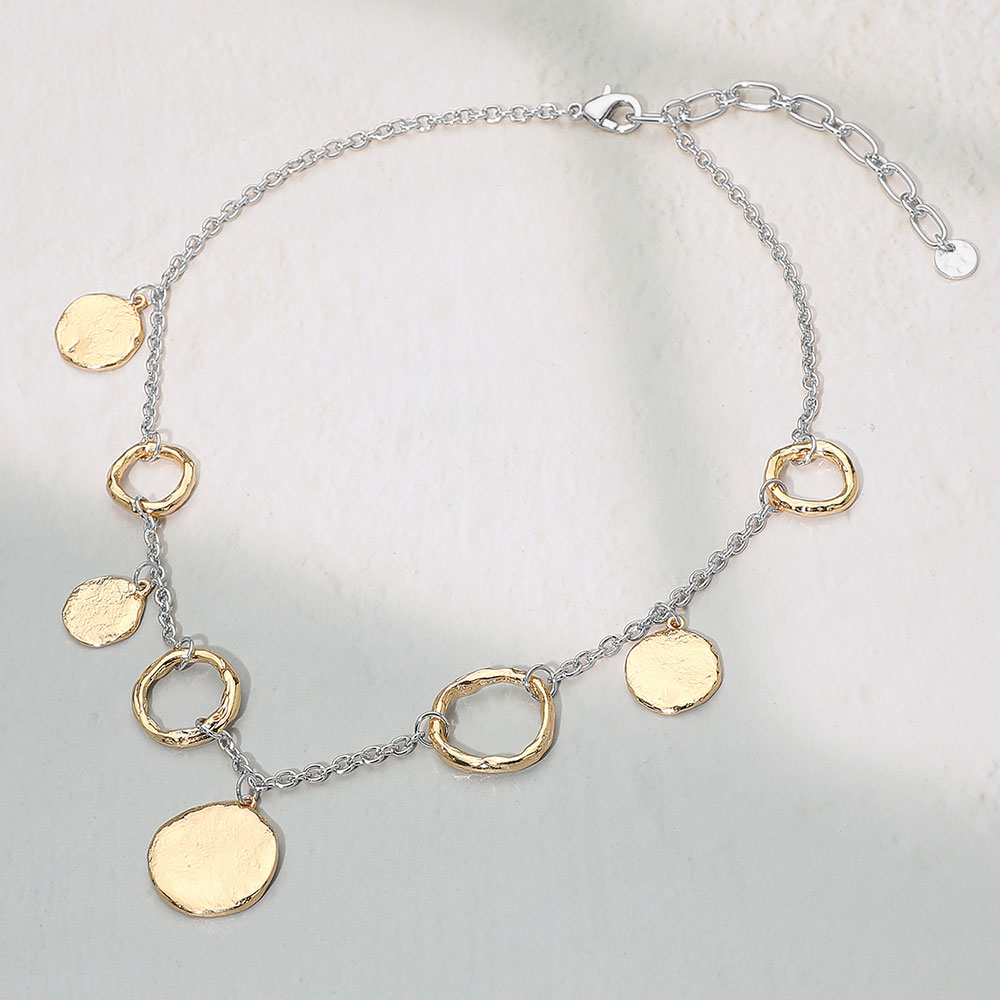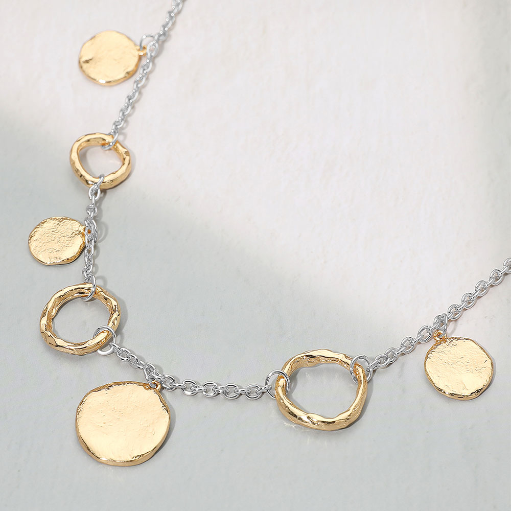 Details • Necklace Size : 17.5" + 3" L • Decor Size : 1.1" L • Make a subtle statement with this disc charm link necklace showcasing alternating textured links and dangling accents for eye-catching movement and modern appeal. Designed for versatile styling, it complements both casual looks and elevated outfits with effortless charm. • Lead and Nickel Compliant