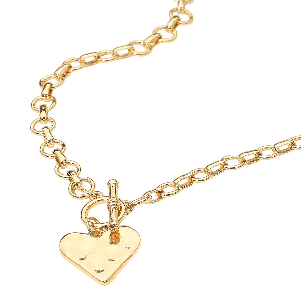 Hammered Metal Heart Pendant Chunky Chain Toggle Necklace