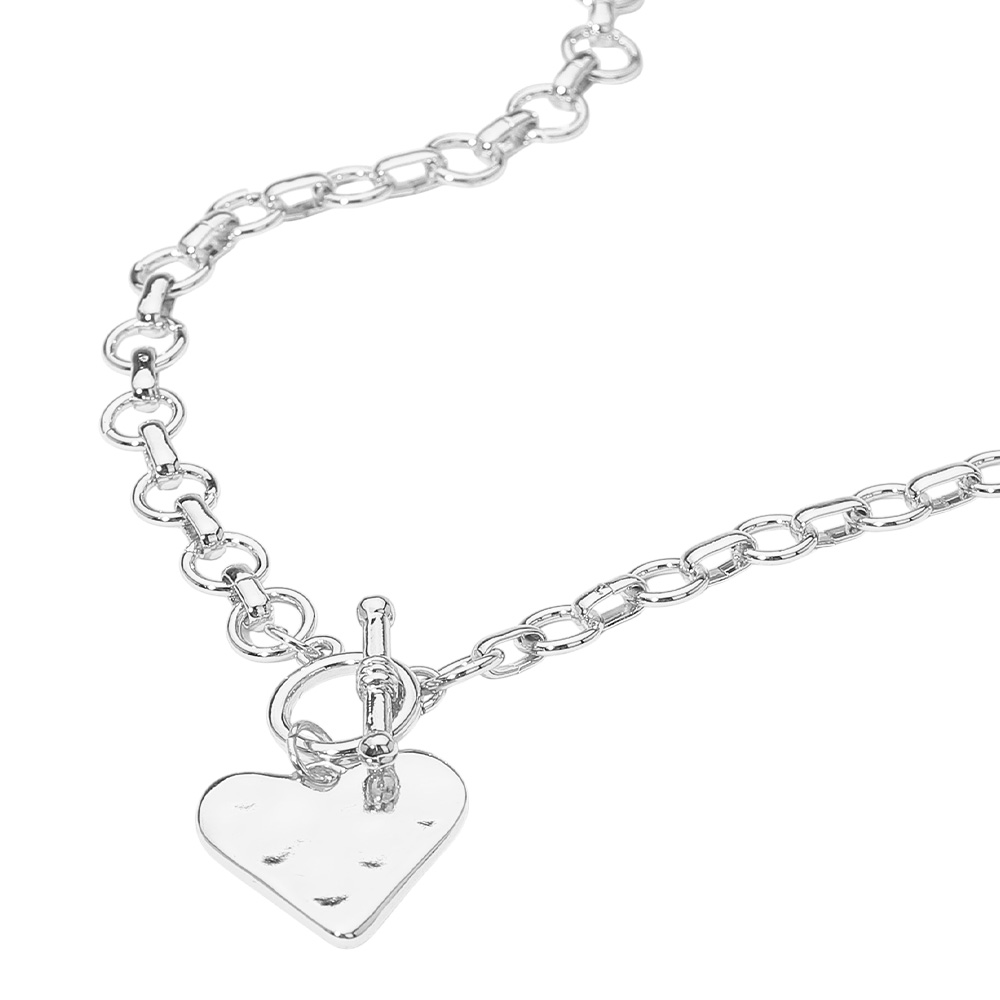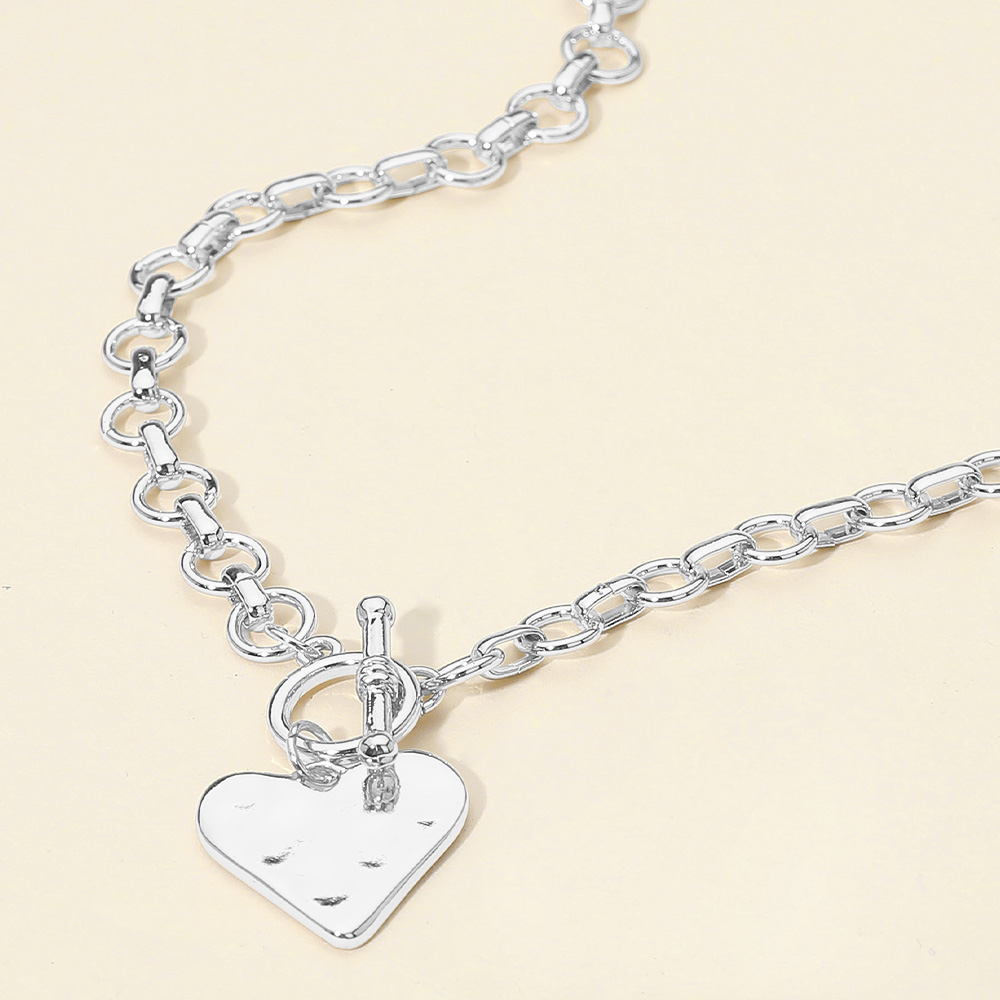 Hammered Metal Heart Charm Chain Link Toggle Bracelet