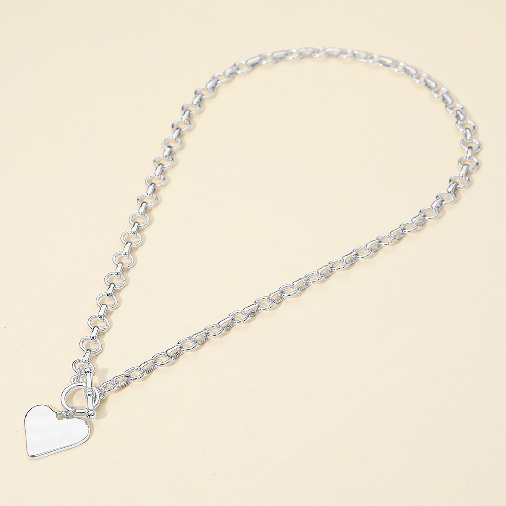 Details • Necklace Size : 18.5" + 0.5" L • Pendant Size : 0.8" X 1" • Toggle Closure • Showcase effortless elegance with this polished heart charm chain necklace. Featuring a sleek linked design and a toggle clasp, it blends modern minimalism with timeless romance—perfect for layering or wearing solo to enhance any outfit with a subtle, stylish accent. • Lead and Nickel Compliant